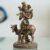 A small statue depicting the Hindu deity Hanuman, sitting in a devotional pose. The statue is made of copper and has a polished finish. Hanuman is a monkey god who is known for his strength, devotion, and intelligence. He is a popular figure in Hinduism and is often worshipped for his ability to protect from evil and bring good luck.